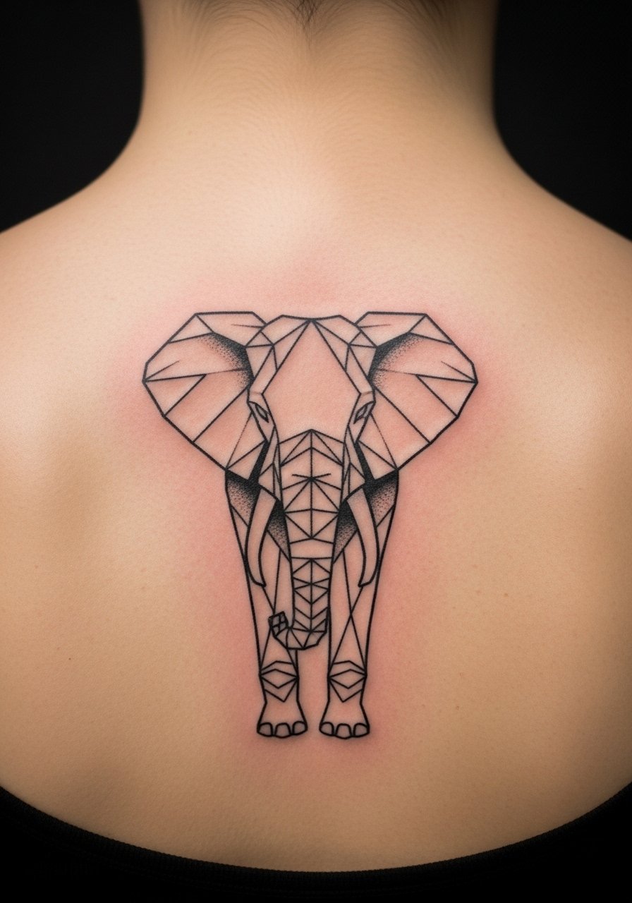 Vertical geometric elephants look great along the spine or sternum. They can mix triangles, lines, and negative space to represent strength and structure. Pain near the spine can be intense; plan breaks. Longevity is good with bold geometry, but fine connecting lines need careful spacing. A common mistake is over-detailing too close to the spine—lines blur more there. I recommend working with an artist who specializes in geometric and tribal elephant tattoo designs and asking to see healed spine pieces for reference.