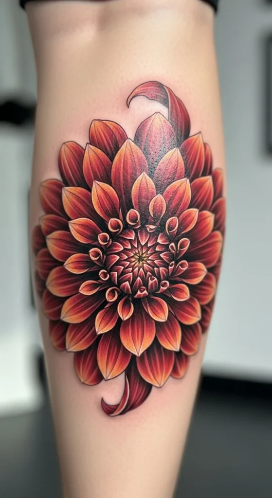 Dahlias give a full, rounded look thanks to their layered petals. The calf is perfect because it offers space and stays relatively stable. Start by sketching a circle and marking simple petal layers to see if you prefer a dense or loose style. For a more affordable session, choose fewer petals or ask the artist to soften the center details. Dahlias look lovely in black ink with dot shading. If you want personality, tilt the flower slightly to follow your calf’s curve. This area heals smoothly and stays protected by clothing. Lotions help maintain shading clarity. A dahlia works well as a standalone feature, so you don’t need additional leaves unless you want extra length.