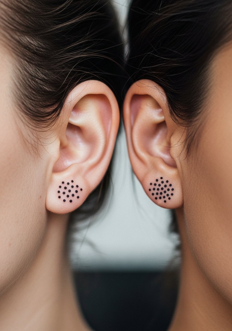 Tiny interlocking dots are a quiet way to symbolize connection. Behind the ear is discreet and surprisingly low-pain for many people, though cartilage can be twitchy. Healing is fast—about 1-2 weeks for surface repair—so keep it moisturized. These hold up well if dots are placed with intentional spacing; avoid pinprick-thin dots placed too close or they may merge when healed. Tell your artist you want healed examples of dotwork on similar skin tones before booking.