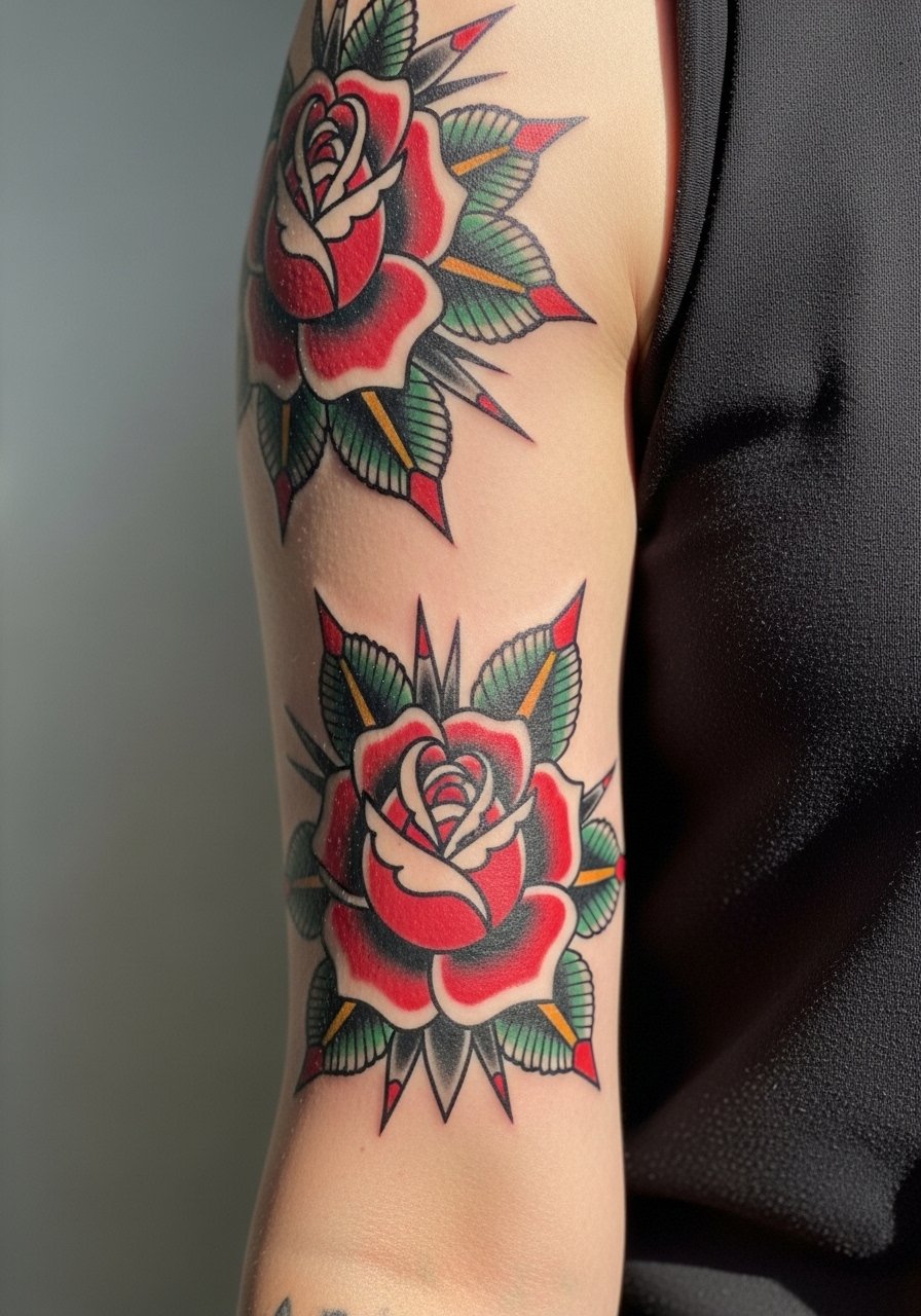 3. Traditional Matching Roses on Upper Arm
