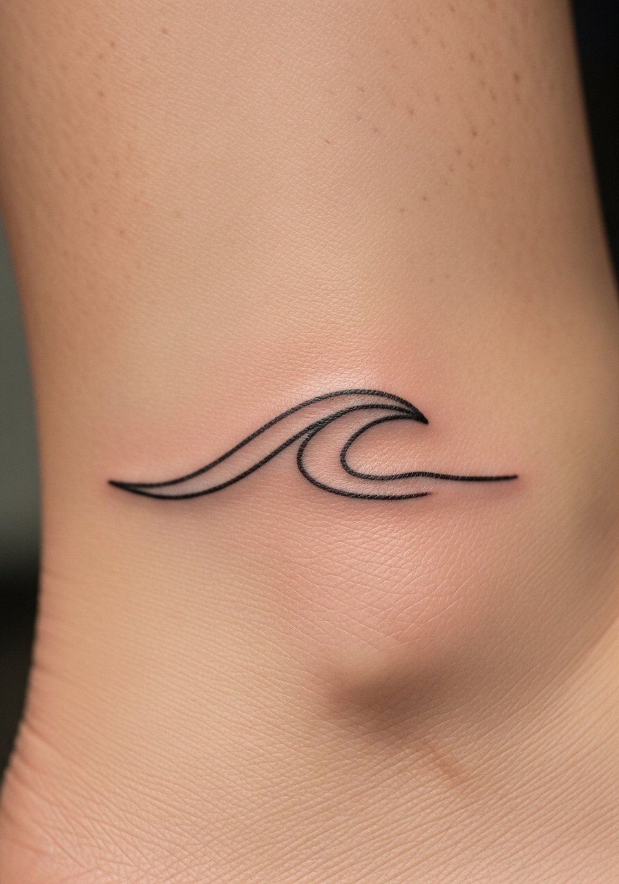 A single flowing wave is a subtle symbol for friends who met by water or share surf memories. On the ankle bone, pain can spike over bone but heals quickly. Fine line waves look great when done with slight weight—ultra-thin single lines may blur. I suggest matching placement symmetry for friends so pieces read like partners when sitting side-by-side. Keep the area protected from boots and rough socks while healing.