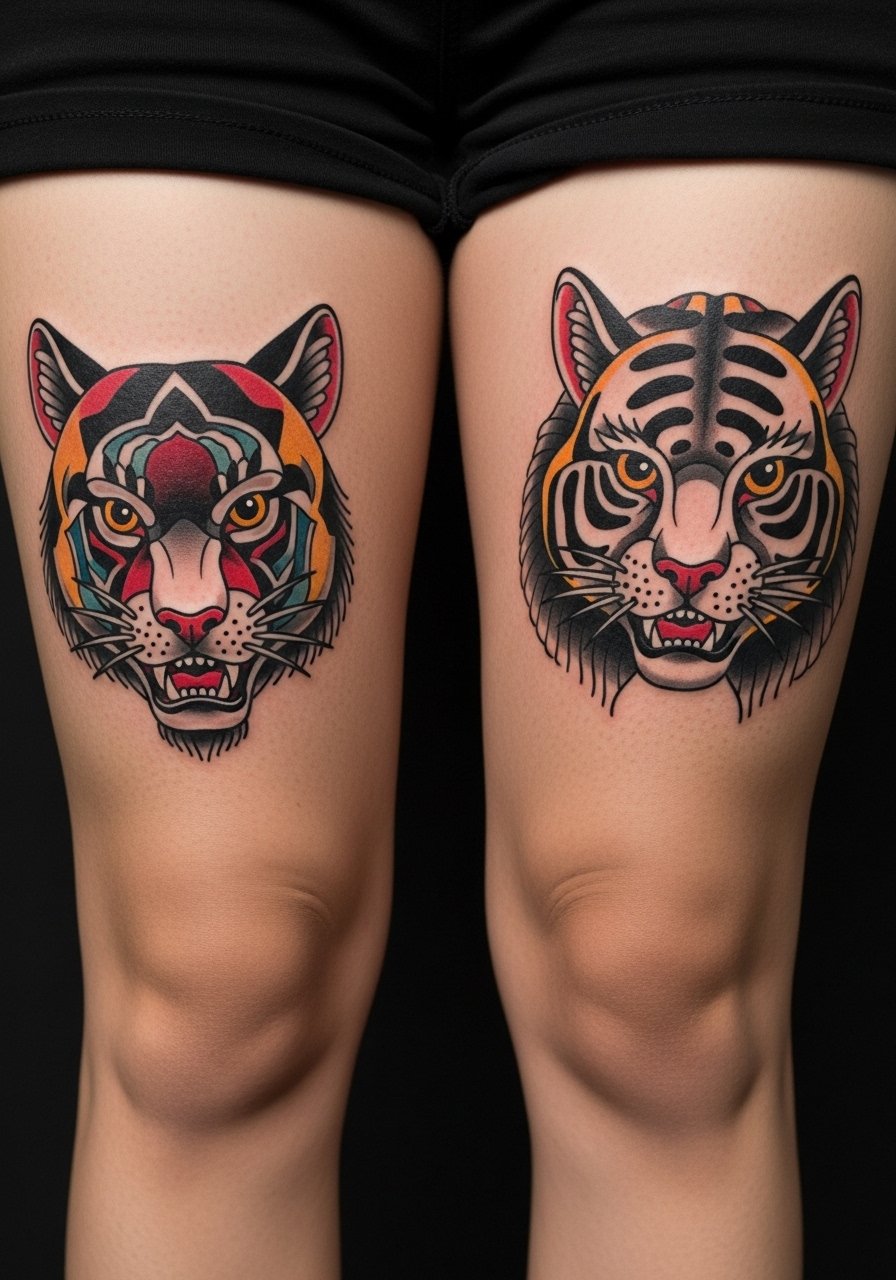 12. Neo-Traditional Animal Pair on Thigh