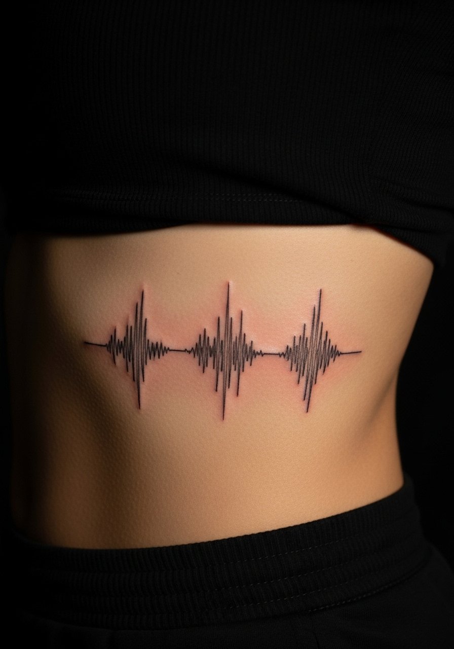 A soundwave of a private voice memo or song chorus is uniquely intimate. The ribs are painful for many, so prepare mentally and physically. The lines must be bold enough; thin spikes can blur into one another when the skin settles. Ask the artist to map the wave for legibility and to include negative spacing. Expect a longer aftercare period because torso movement flexes the skin frequently.