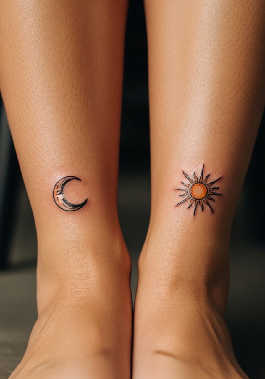 19. Matching Crescent Moon and Sun on Ankles