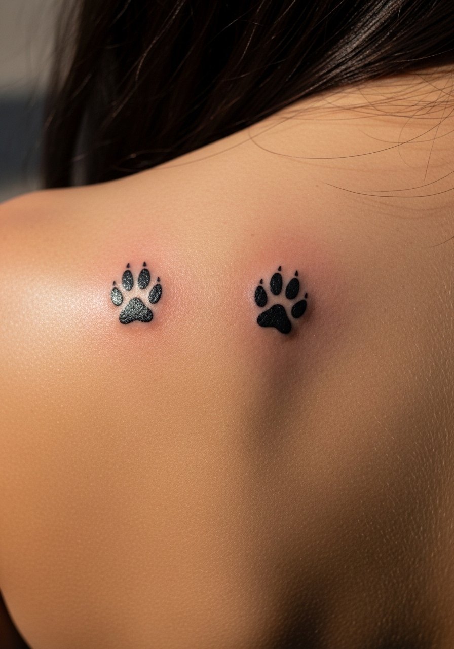 25. Matching Minimalist Paw Prints on Shoulder Blade