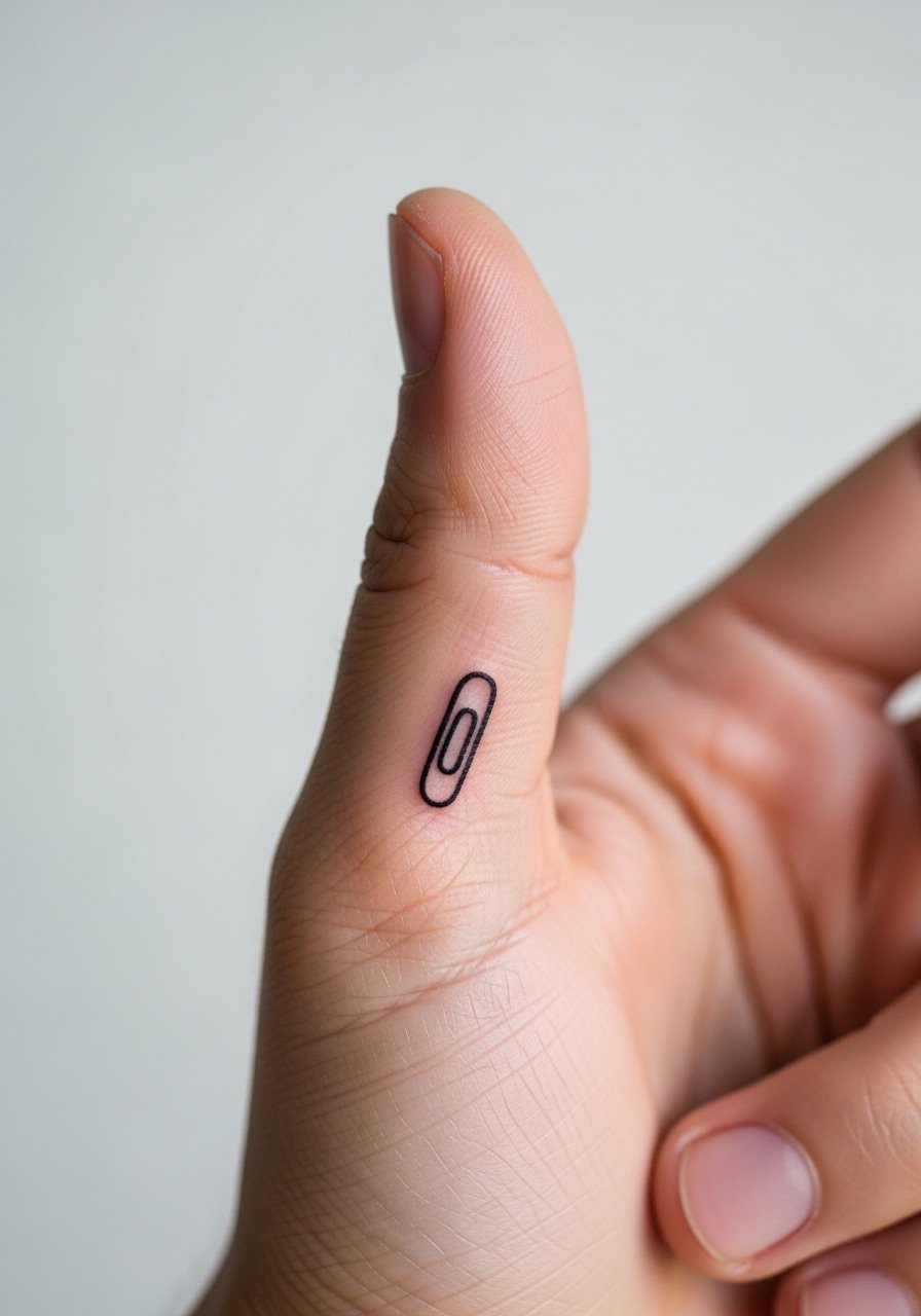 Small, quirky marks like a paperclip are low-key but carry private meaning—maybe an inside joke. Thumbs are painful and prone to fading; expect the need for touch-ups if you use your hands heavily. Keep the design bold and simple to survive hand wear. If you want something truly low-maintenance, consider placing the same motif on the inner wrist instead.
