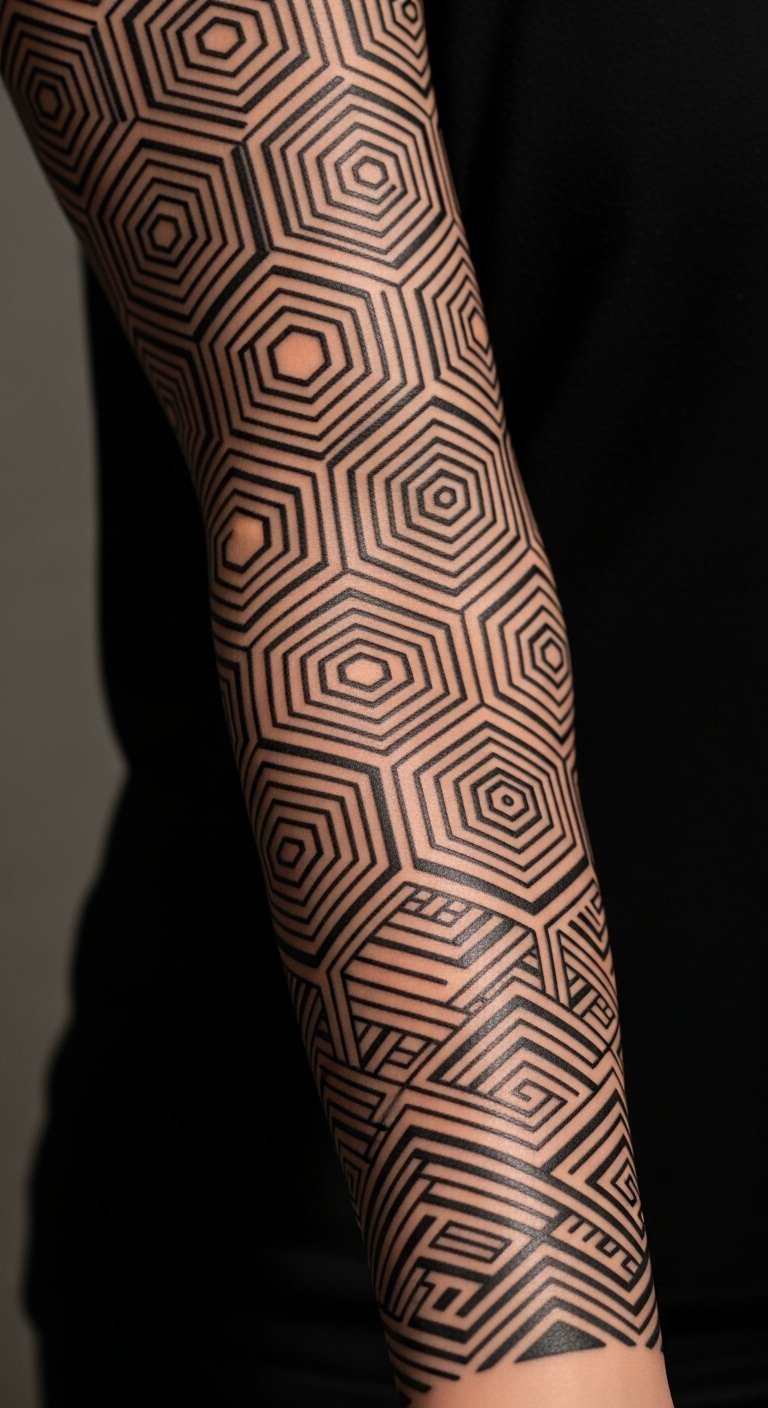 Full Geometric Sleeve With Repeating Patterns