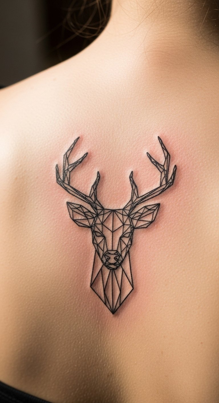Fine Line Geometric Deer On Upper Back