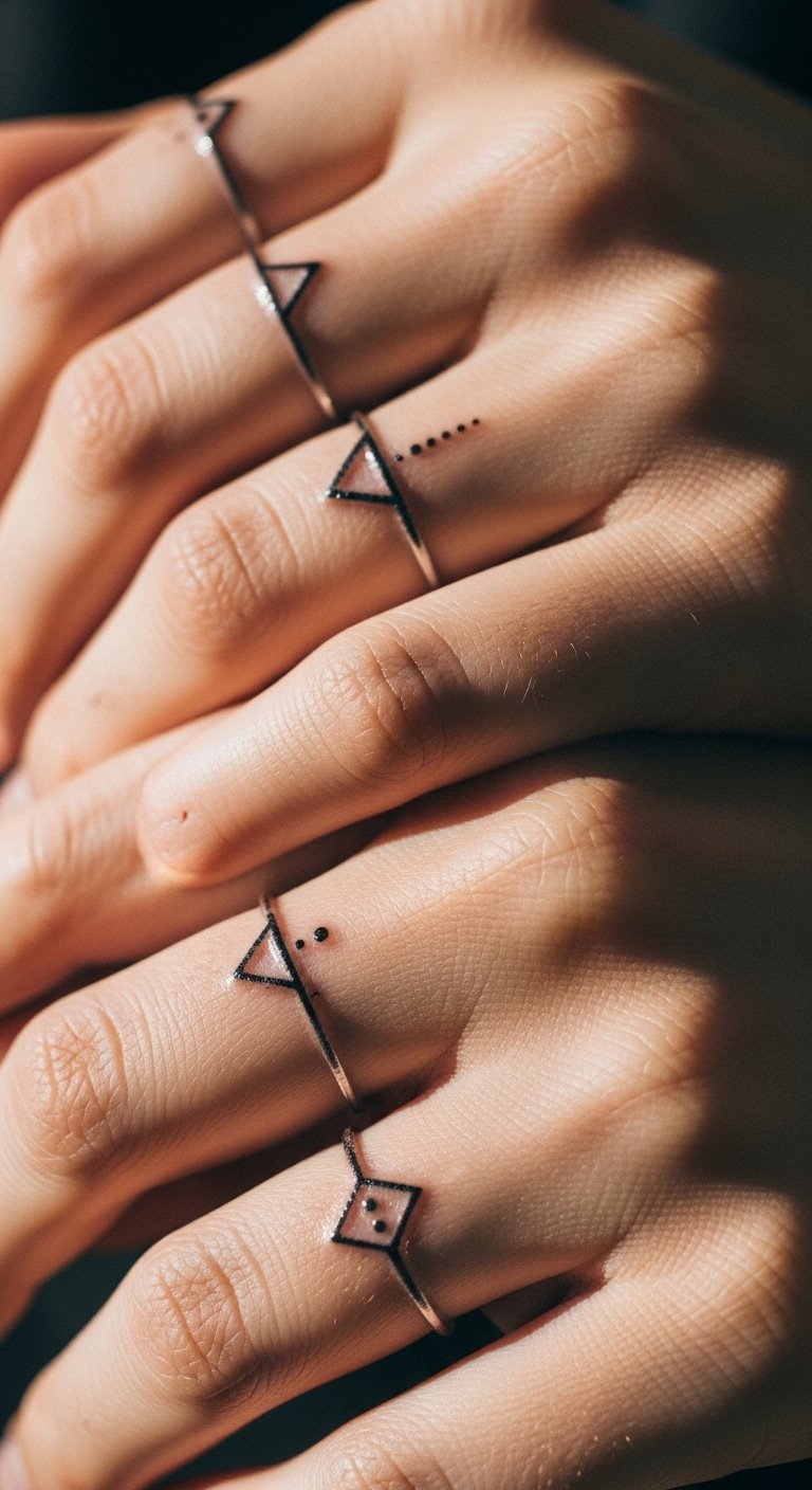 Fingers are high-maintenance. Micro geometrics look delicate but fade faster. Expect touch-ups. Don’t pick ultra-thin lines for finger work. Consider bolder micro shapes and plan for maintenance.