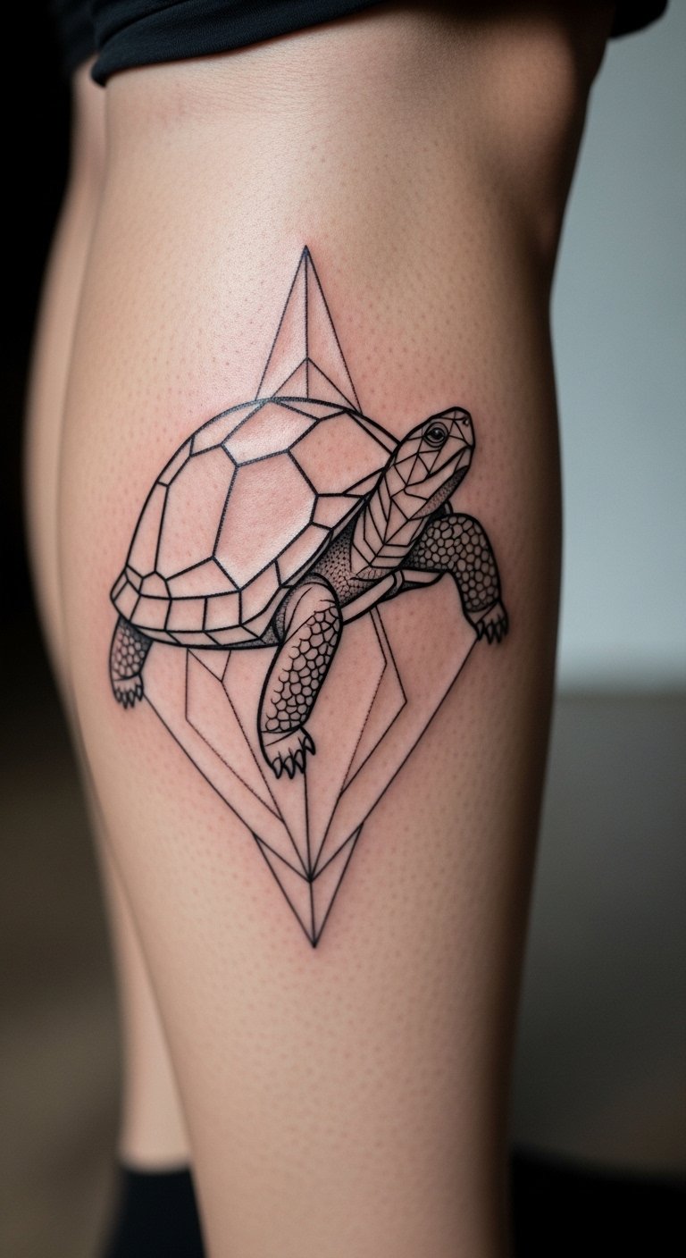 Muscle-Contour Geometric Tortoise On Calf