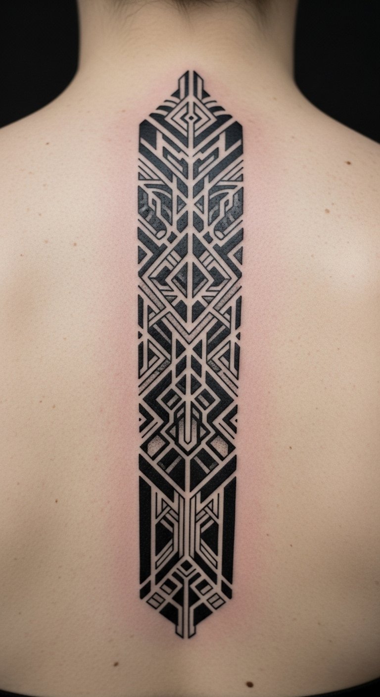 Blackwork Geometric Spine Column