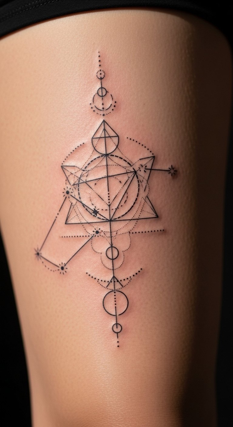 Thighs take larger compositions and heal easily. Connect constellation dots with geometric lines for a smart personal map. Keep spacing so stars don’t blur into one another.