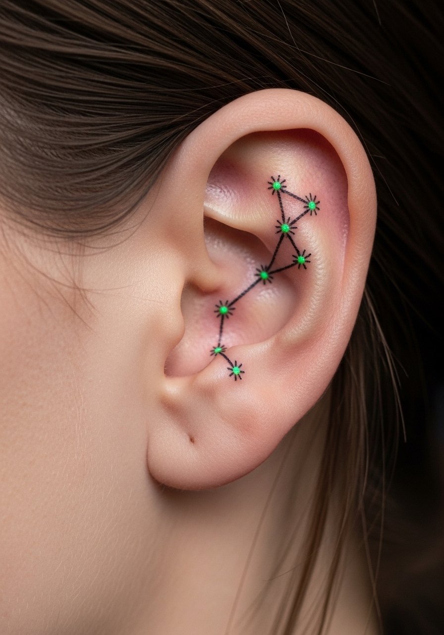 7. Small Behind-Ear Constellation With UV Dots