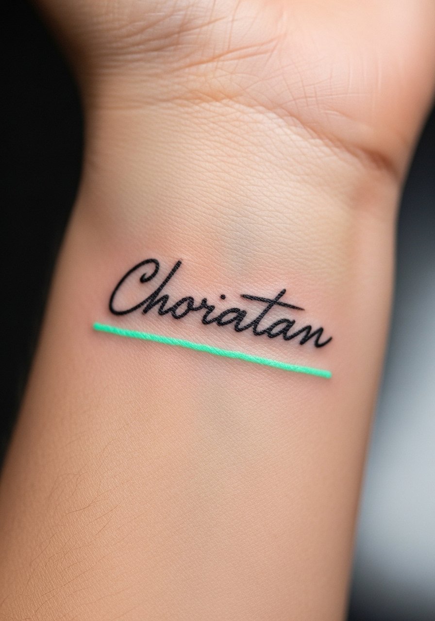 A short word in black looks classic. Adding a UV underline or shadow gives a secret message after-dark. The wrist is often sensitive and moves a lot during healing; avoid tight wristbands while it’s fresh. Fine script needs an artist who steadies their hand—otherwise letters can mush together.