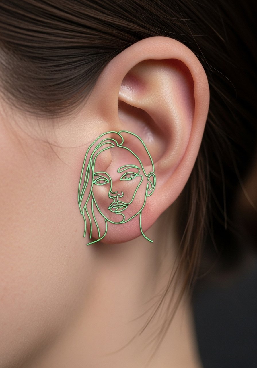 16. Minimal Line Portrait Behind Ear With UV Outline