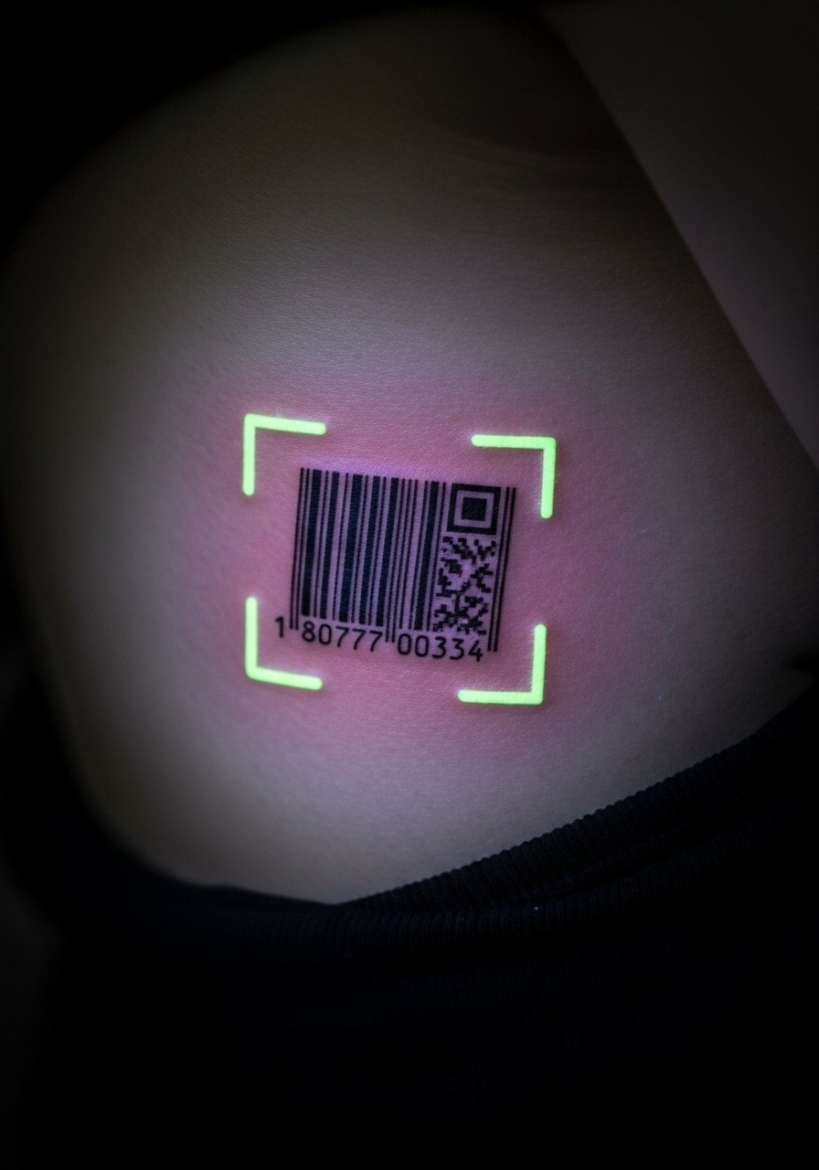 Concept tattoos like hidden barcodes read plain by day and reveal a pattern under UV. Ribs are painful; plan accordingly. Keep lines crisp—blurry bars ruin the motif.