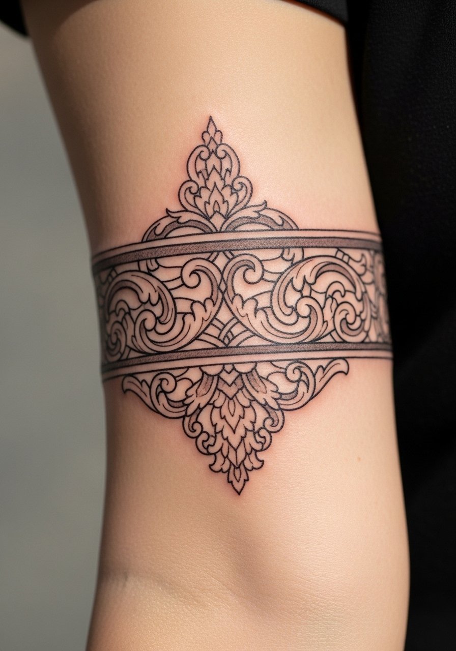 A filigree armband gives Gothic lace energy without being fragile. I went for forearm so it’s visible and easy to show. Forearm pain is moderate, and the skin tolerates fine lines well. Over time, super-fine scrollwork can blur, so ask your artist for a balance between delicacy and crispness. Healed armbands look like wearable jewelry; avoid narrow single lines that can disappear. Common mistake: not testing the wrap—have the artist map it while your arm is in natural position. That keeps decoration flowing and comfortable.