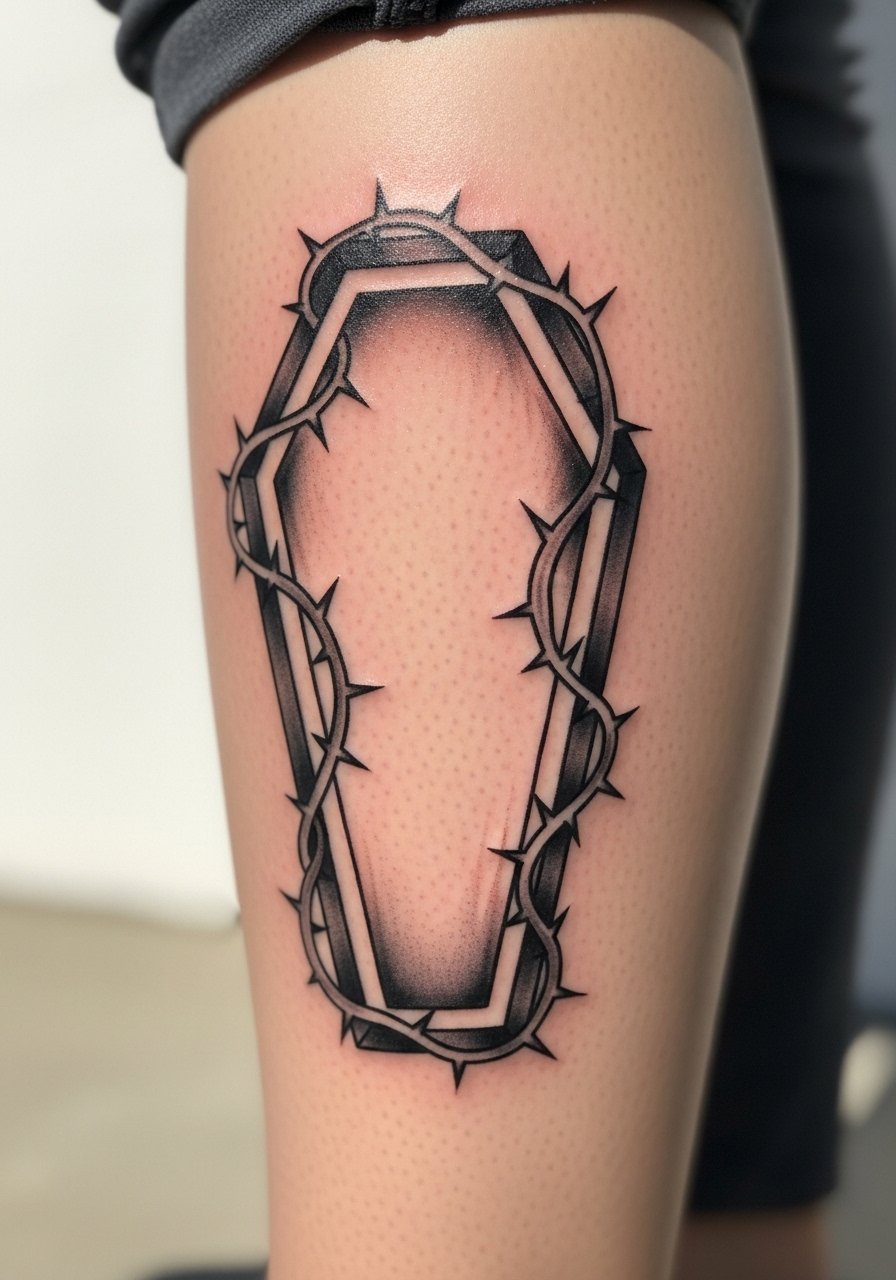 9. Coffin With Thorns on Calf