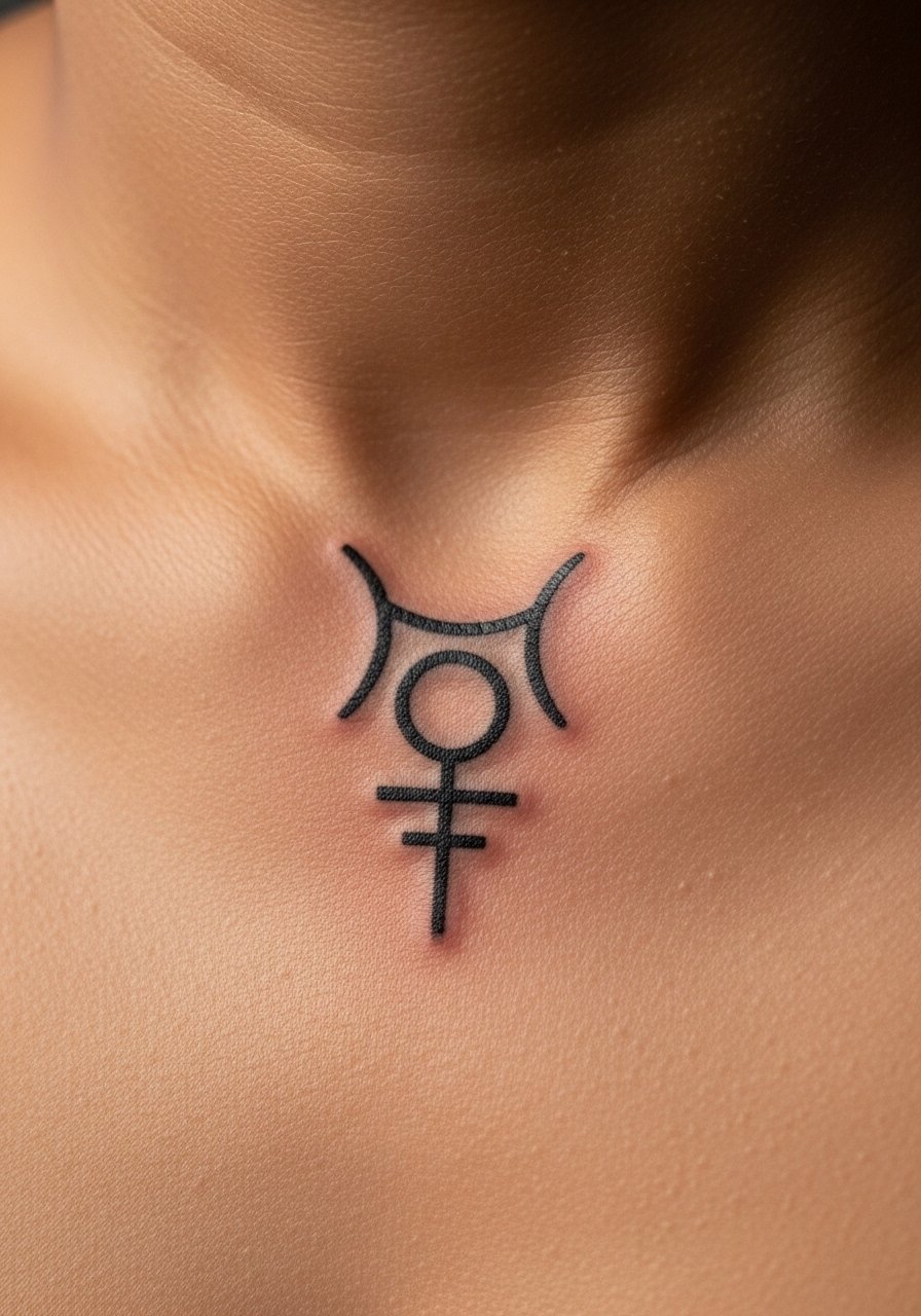 A small sigil on the collarbone sits in plain sight and feels personal. I favored this for its ability to double as jewelry or emblem. Collarbone pain is tolerable but hits near bone. Fine geometric lines must be spaced properly; if they're too tight they'll blur. Common mistake: using hairline strokes for a regular sigil—bolder lines keep the symbol readable. This is a minimalist Gothic option that still packs meaning.