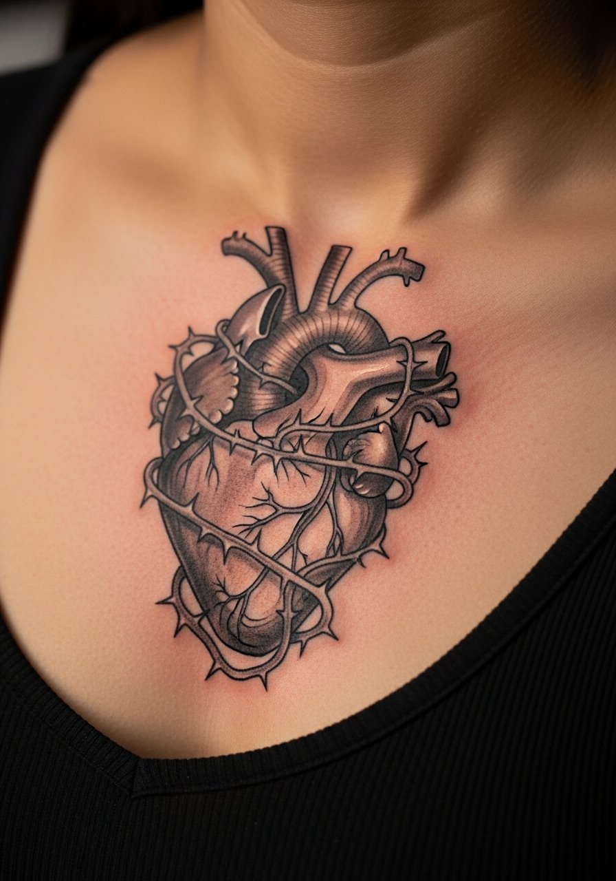 23. Anatomical Heart Wrapped in Thorns on Sternum