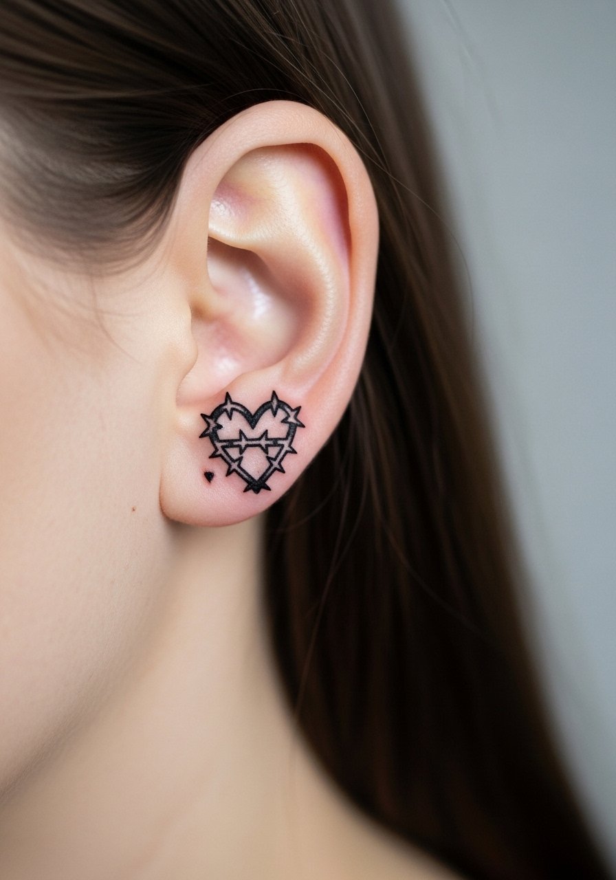 25. Barbed Heart Pendant Behind Ear