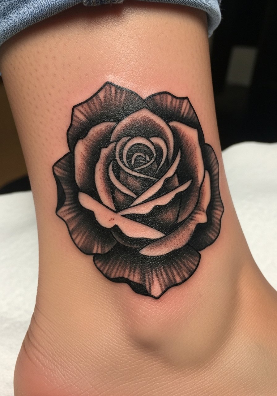 26. Stained Black Rose on Ankle