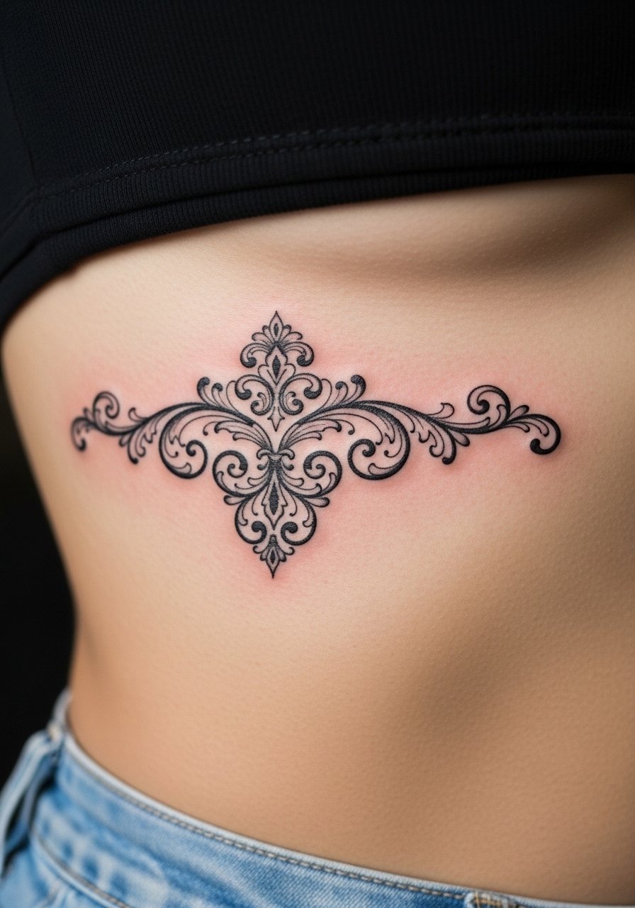 A: Skin that stretches frequently will affect filigree more than static areas. For thin or athletic builds ask your artist to avoid ultra-fine loops directly over the most mobile spots. When I design rib pieces I prefer slightly larger motifs and clear spacing. Also plan for how clothing sits across the ribs while healing.
