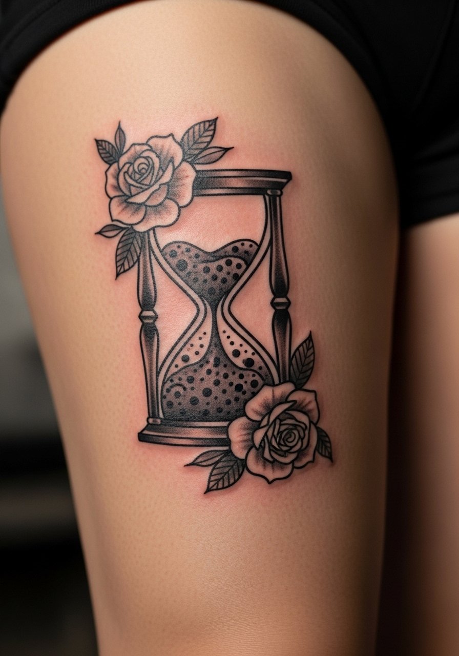 9. Hourglass and Roses on Thigh