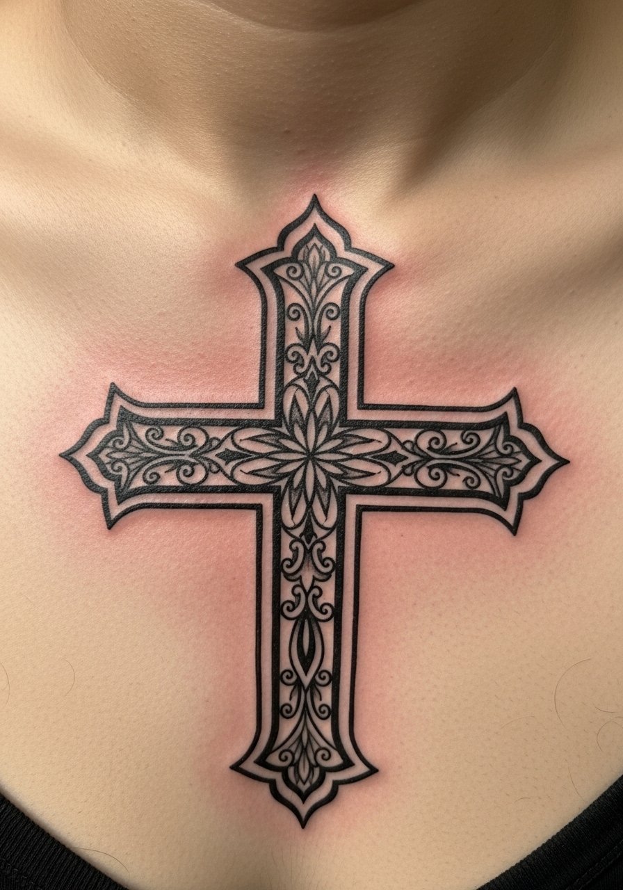 When my client wanted a statement on the chest, an ornamental cross felt both gothic and personal. Sternum work pain ranges 6 to 8. One to two sessions will get you a medium cross. Ask for strong negative spaces around the cross to prevent crowding during healing. People often pack too much filigree into a small central area. That filigree turns into a gray blur over time. For aftercare on chest pieces I recommend using a fragrance-free lotion after the first three days and avoiding tight collars.
