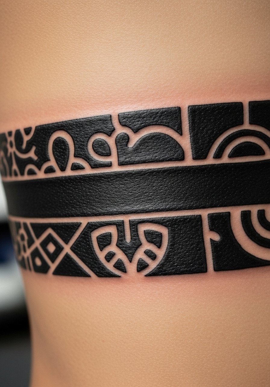 Blackout bands make a bold gothic statement. On ribs, expect a 7 out of 10 pain level. A medium band may need one long session or two short ones. Tell your artist you want crisp negative-space motifs cut out of the black, not drawn on top. A common mistake is asking for intricate cutouts that are too delicate against a large black field. Those thin cutouts can close up as ink settles. Blackout ages predictably if the black is consistently packed and you follow sun protection.