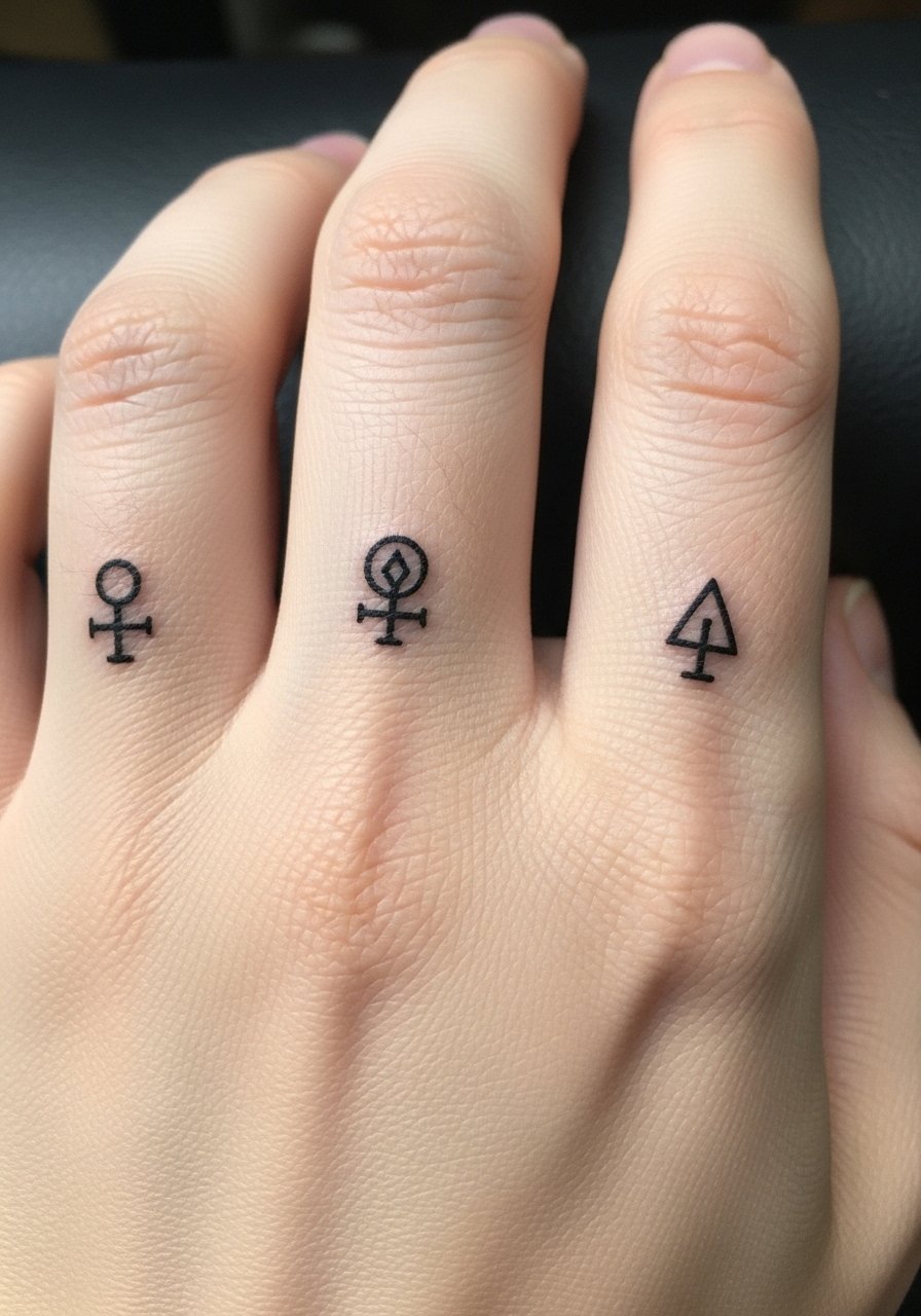 26. Mini Blackwork Symbols on Fingers