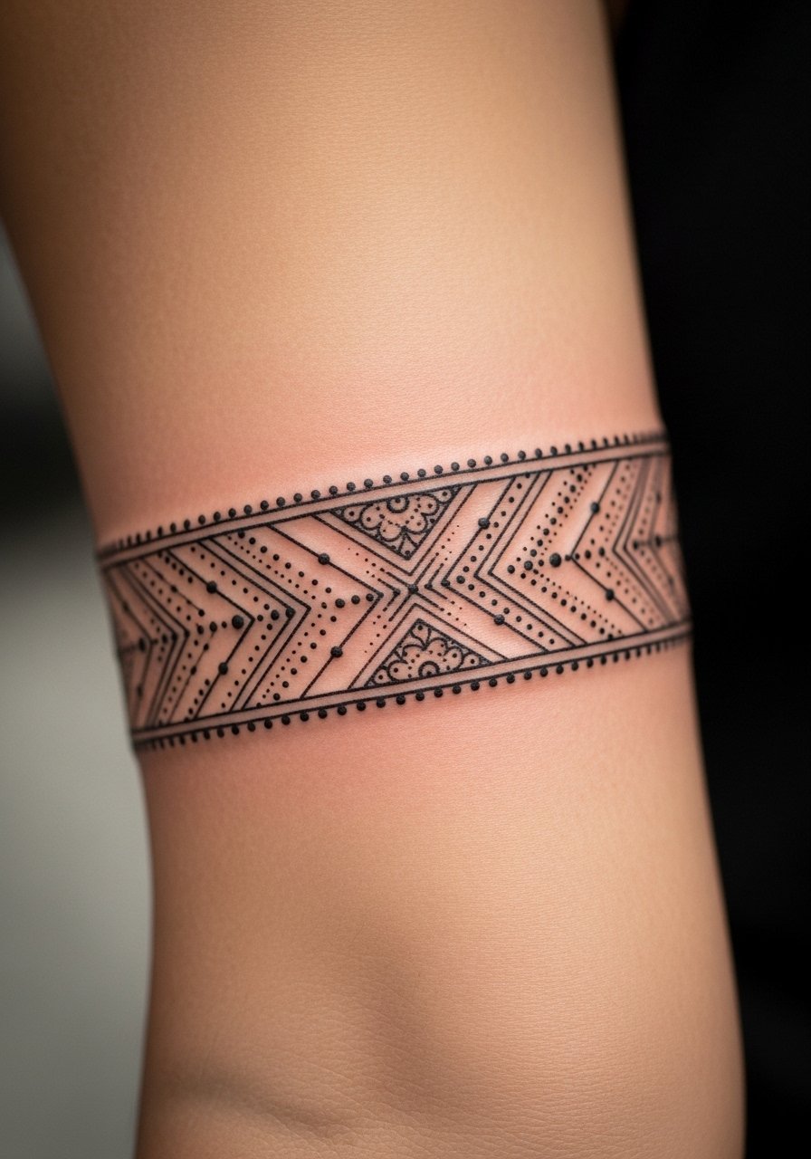 1. Geometric Henna Band on Outer Forearm