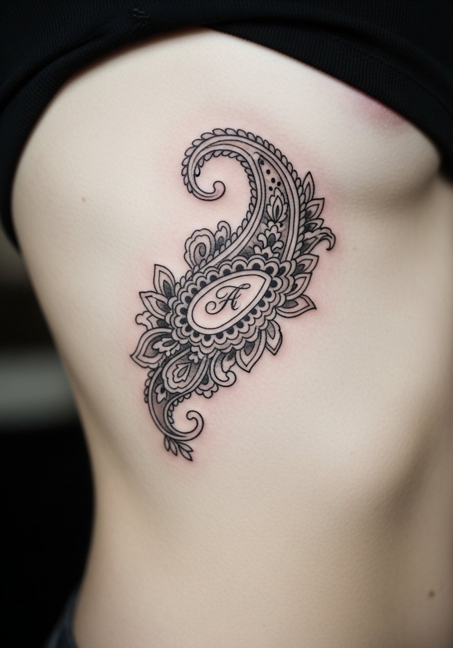 I love the idea of hiding initials or tiny symbols inside a paisley—it's playful and private. Ribcage placement is more painful and needs longer surface healing due to movement and clothing contact. For delicate personalization, you’ll want an experienced artist who can balance legibility and ornament. Healed paisley that integrates initials looks like an easter-egg; just expect increased soreness during the session and avoid tight bras or waistbands while it heals.