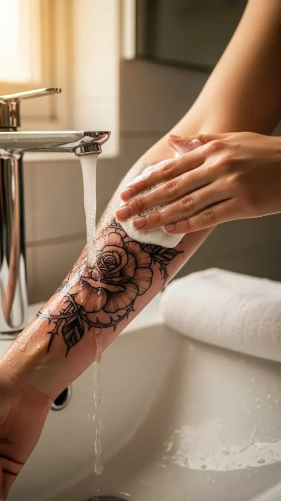 Pro tip: If your tattoo feels tight and dry after washing, that’s normal—just moisturize lightly (more on that next).