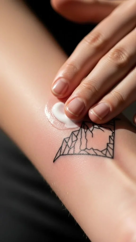 • A thin layer of fragrance-free tattoo aftercare ointment (first couple of days if recommended).