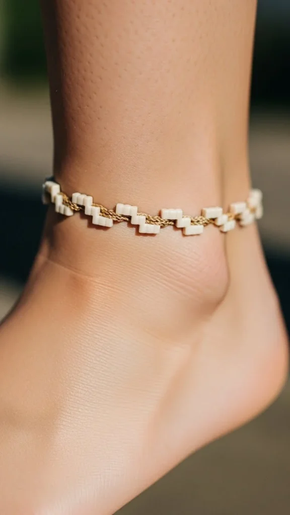 Step patterns create a blocky rhythm. They pair well with knot work because the contrast between curved lines and straight shapes looks balanced. Keep the steps small and evenly spaced. For an affordable option, choose outline-only steps. Draw a knot band and use a ruler to add small blocks. Shift them around to see how the pattern fits your ankle. This style works especially well for wider placements.