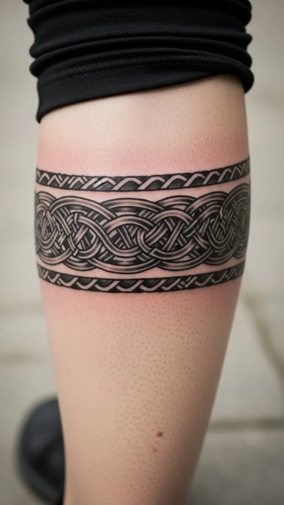 Thicker lines make the band easy to see from far away. This helps if you want a strong look without adding extra details. The weaving lines still feel smooth and calm. You can adjust the width based on your comfort. If you want to reduce cost, stick to one uniform line width so the artist can work quickly. You can mock up your idea by drawing on craft paper with a thick marker. Wrap the paper around your leg to check how the thickness reads.