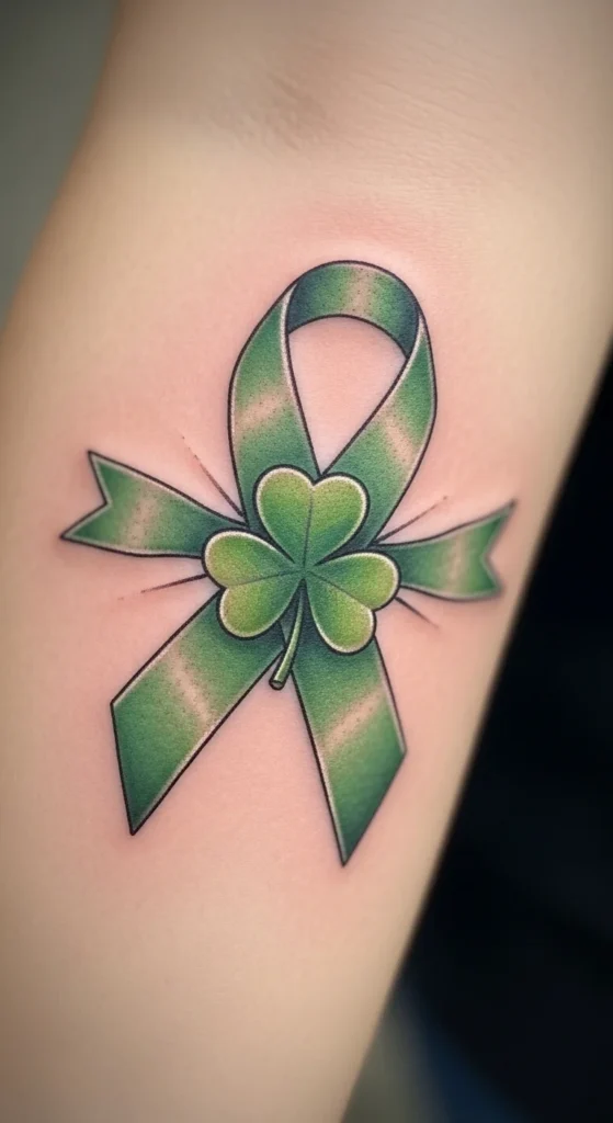 This design combines a gentle ribbon shape with Irish charm. It feels warm and feminine without being too bold. You can place it on the collarbone or inner arm for a graceful look. Draw a loose bow on paper and adjust the loops until they sit the way you like. Add a tiny clover at the center to emphasize the meaning. Ask your artist for thin lines to keep the ribbon airy. It’s affordable and easy to personalize.