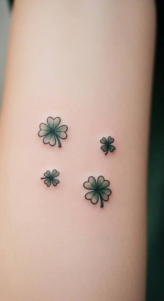 A constellation-style layout is fun and gentle. You can use three or four clovers spaced out to mimic stars. This idea works great along the shoulder or upper arm. Draw simple dots on your skin to test spacing. If you prefer a softer look, make one clover slightly larger than the others. This design also allows you to add more clovers over time.
