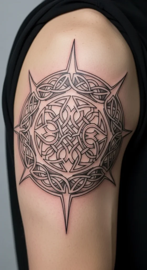 Pairing a Celtic circle with a clover creates a strong symbol of positivity and connection. This design works well for medium-sized placements like the upper arm. Start by sketching a Celtic border, then add a clover inside. Try different center sizes to see which feels balanced. You can ask your artist for thin lines if you want a delicate finish. A faint green tint adds charm without overpowering the knotwork.