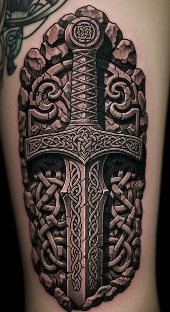 16. Sword Embedded in Celtic Stone