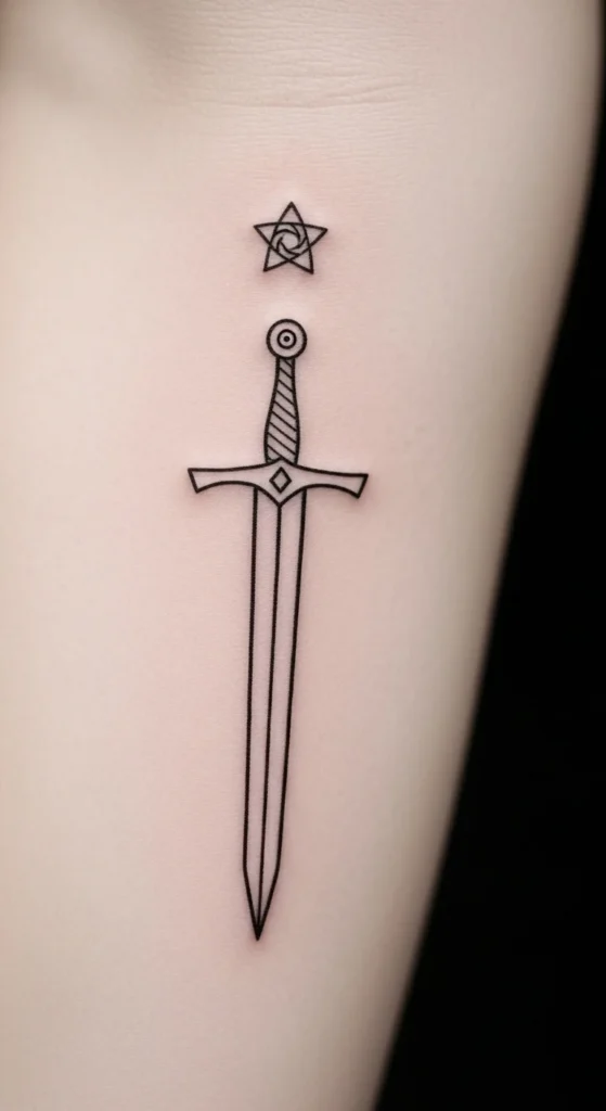 6. Minimal Line Sword With Tiny Celtic Star