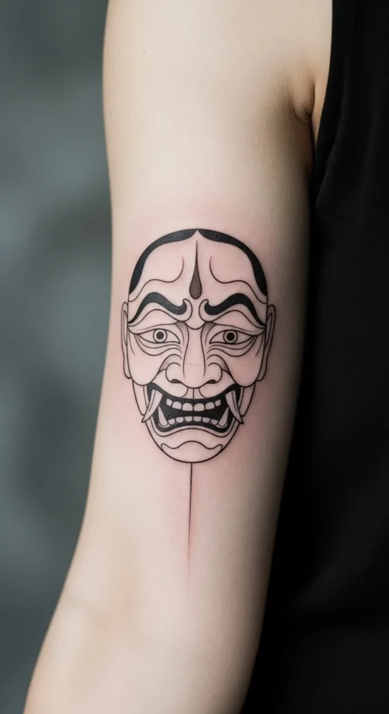 Masks from Korean culture carry expressive meanings even in tiny form. Simplify the face into soft lines rather than detailed patterns so the tattoo stays clean. To test your version, sketch the mask with just eyes, nose, and a curved outline. Remove any lines that feel too busy. A forearm or inner bicep placement gives enough space for clarity without going large. If you want something playful, pair the mask with a single flower or a tiny star.