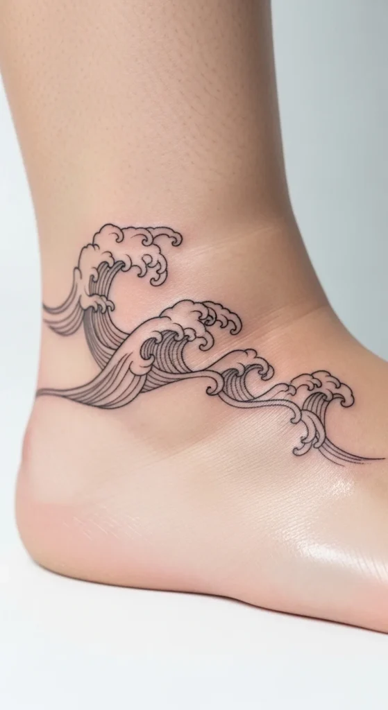 Waves express flow and resilience. Korean-style waves use smooth arcs and short line accents. You can sketch a single curved wave, then add two or three short lines for texture. This style fits almost anywhere: wrist, ankle, or rib. To preview it, draw the curve with a pen on clear tape and place it on your skin. Keep the wave small so the lines stay sharp.