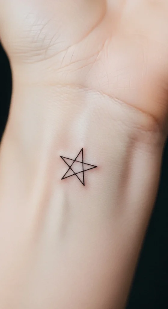 Stars are universal symbols that appear often in Korean minimalist tattoo styles. A tiny star feels discreet and versatile. Try drawing one with soft edges instead of sharp points if you want a gentler look. Perfect for stacking with other mini tattoos. To keep it budget friendly, sketch several versions on tape and place them on different parts of your wrist or hand to test.