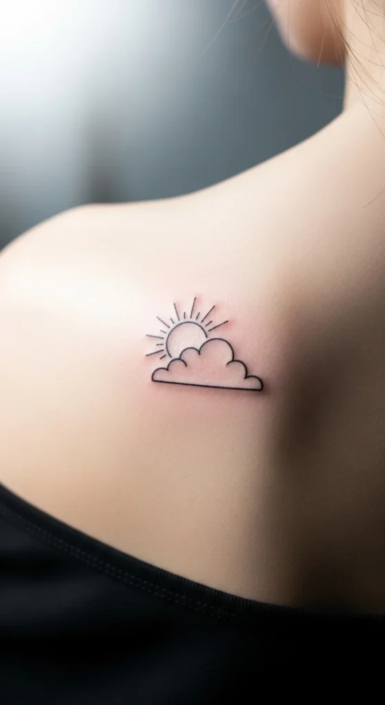 A tiny sun paired with a cloud creates a soft, hopeful message. Korean-style versions use rounded edges and thin lines. Sketch a small circle for the sun and two curved bumps for the cloud. Keep the design small enough to stay crisp. Works well near the shoulder, wrist, or ankle. If you want to test placement, draw the design on your skin lightly with a washable pen.
