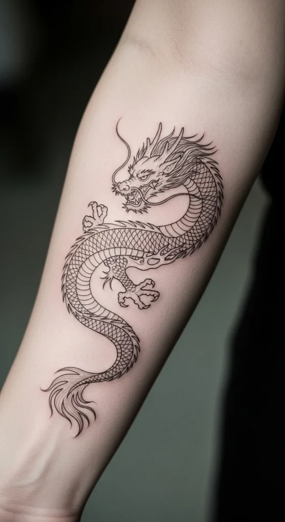 Korean dragons symbolize strength and protection. A micro version lets you keep the meaning without going large. Curved shapes work well along the arm or spine because they follow the natural flow of the body. For a simple DIY design test, sketch an “S” curve, then add scales and claws very lightly. Keep the details minimal to avoid blur later. If you like more impact, ask your artist for a slightly thicker tail or bolder head lines. Test the shape by printing a draft and taping it on your arm to see how it moves with your posture.