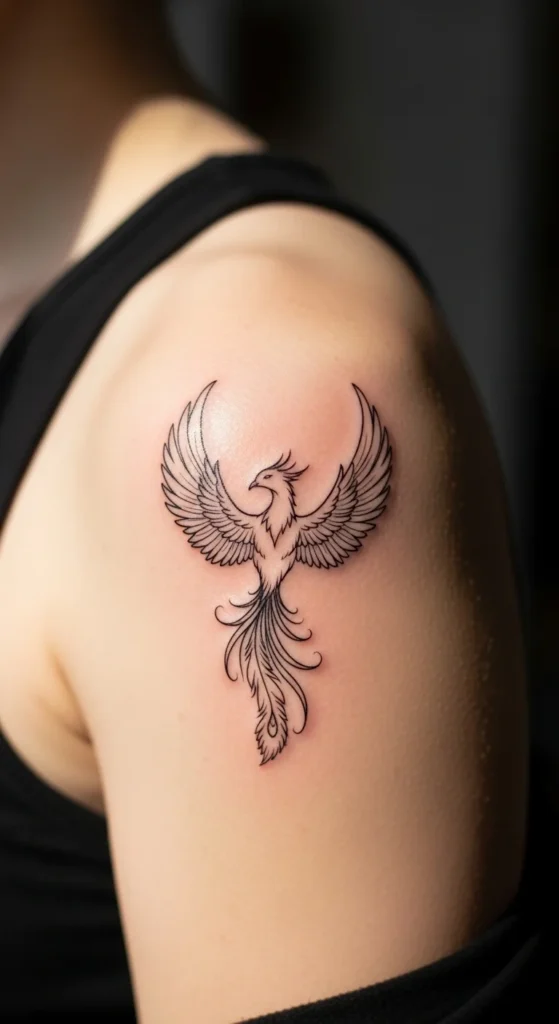 A phoenix stands for rebirth and new beginnings. You don’t need dramatic wings or thick shading for this style. A soft arc of feathers or a rising curve captures the message. To build your design at home, draw a gentle upward curve and add just three feather shapes. Keep everything simple and flowing. This style works well near the shoulder or inner arm. If you want the tattoo to feel even more personal, pair the phoenix with a small date or a short Hangul word.