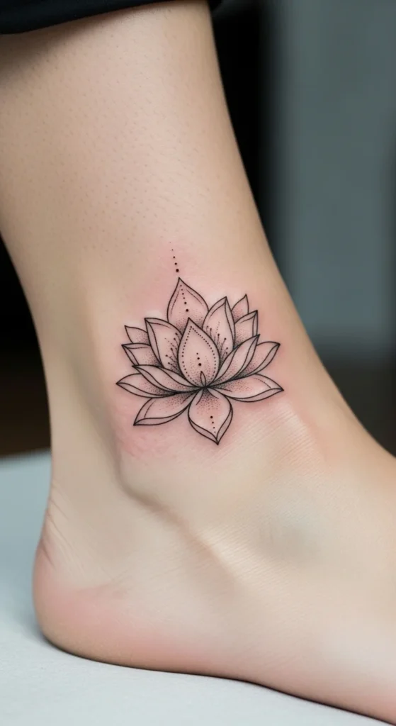 Lotus tattoos feel peaceful and grounded. Korean-style lotuses often use thin lines and small petal clusters. Try sketching a small lotus with three layers of petals, then remove any extra lines until it looks calm. This helps the tattoo stay readable over time. The ankle, wrist, or upper back works nicely for this style. For a simple budget preview, draw a lotus on translucent paper and layer it on your skin to test the size. Keep the petals slightly apart so the shape stays clear.
