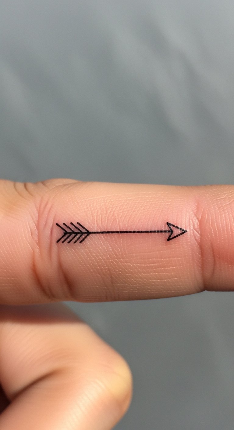 Tiny finger tattoos are discreet but tricky: the skin regenerates often and lines can blur faster. I recommend a minimalist arrow placed on the side pad, with a slightly bolder line than you might expect. Pain is sharper on fingers, and healing requires avoiding constant handwashing friction. Common mistake: asking for ultra-superfine detail — thicker simple strokes will last. Use “minimalist” and “fine line” in your description, but ask your artist about longevity on fingers.